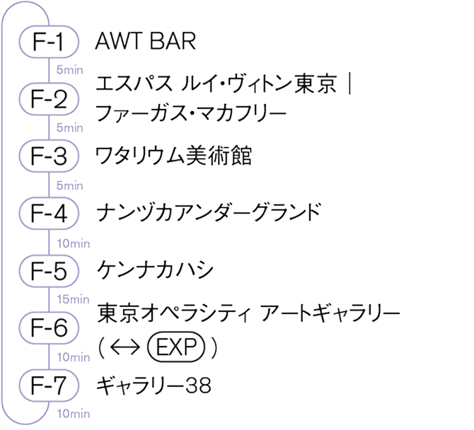 表参道のギャラリーや青山のワタリウム美術館、東京オペラシティがある新宿エリアを巡るルート。