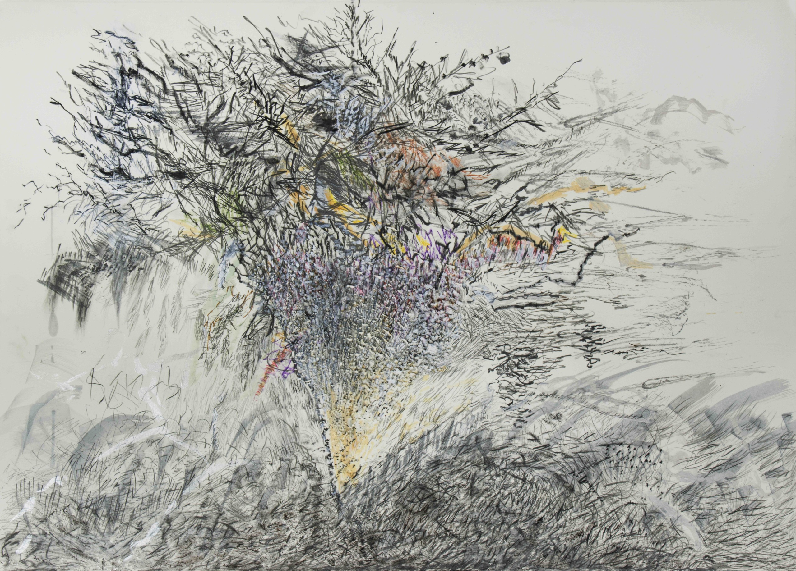 Color pencil, graphite, watercolor, ink, charcoal, and acrylic on paper
